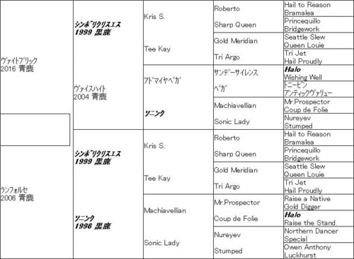 安達太良は◎ヴァイトブリックロスヴァイセの全弟でランフォルセやルミナスパレードと3/4同血、シンボリクリスエス×ソニンク牝系の組み合わせはRobertoとMr.ProspectorとNureyevの黄金トライアングルになるので、機動力あるダート馬が出やすい配合といえます…