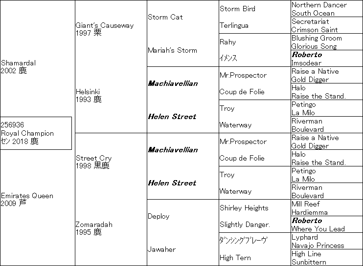 ネオムターフC完勝のRoyal Champion、血統については以下で書いてますがHelsinki=Street Cryの全きょうだいクロス2×2