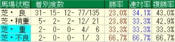 ちなみにシンハリーズ牝系の芝馬場状態別成績は上のとおりで、シンハライトのラストランとなってしまったローズS勝ちも重馬場でしたね