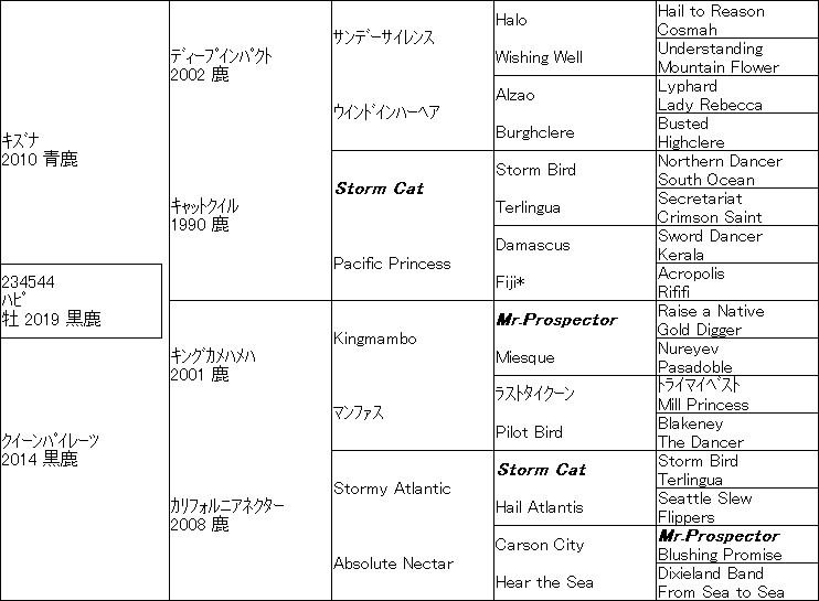 最近競馬始めたような若い人も、今レース走ってる馬が、父や母になって、祖父母になって、血統表の3代目ぐらいまでは見たことある馬や~みたいになってきたら、血統で予想するのがもっと楽しくなると思うよ。長文失礼。オッチャンの血統予想はそんな感じですわ。